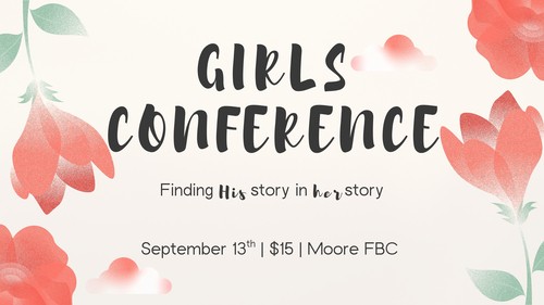 Join us on September 13th at First Moore Baptist Church for a powerful one-day Girls Conference themed “Finding His Story in Her Story.” This event is designed for 7th–12th grade girls and will be a day filled with worship, teaching, and meaningful connection as we discover how our personal stories fit into God’s greater plan. The cost is just $15, and students will need to bring money for both lunch and dinner. Don’t miss this opportunity to grow in your faith, build lasting friendships, and be reminded that God is at work in every part of your story.